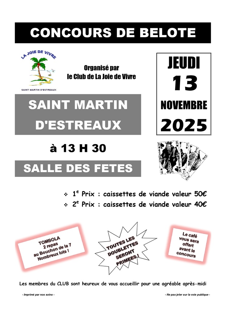Jeudi 13 novembre : Concours de belote