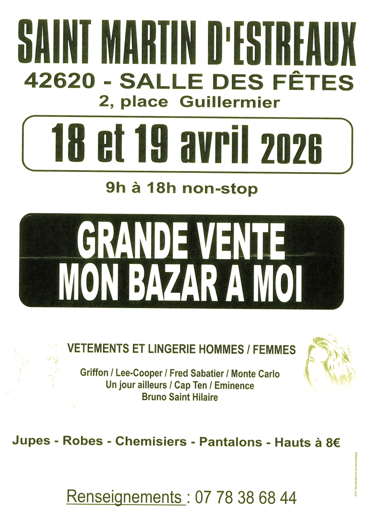Samedi 18 & Dimanche 19 avril : Vente vêtements